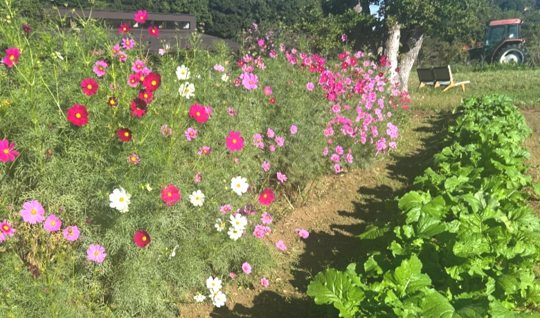整いすぎず、風と虫と命がめぐる畑。そこに立つと、自然との距離がほんの少し近づく——